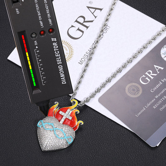VVS Glow In The Dark Fire Cross Heart Pendant