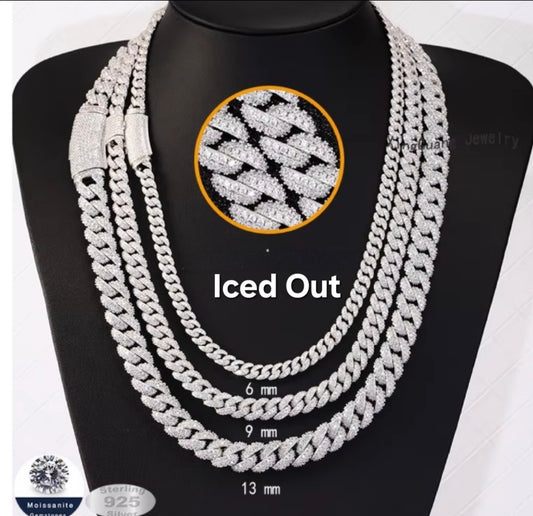 12MM Moissanite Cuban Chain Necklace – 925 Sterling Silver
