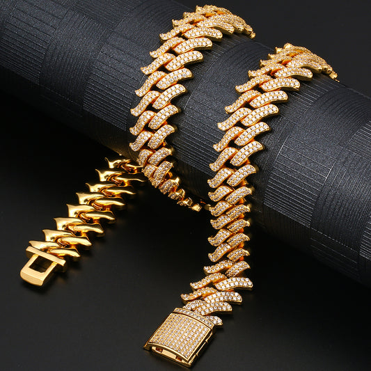 18mm Gold Plated Brass CZ Iced Out Cuban Link Chain